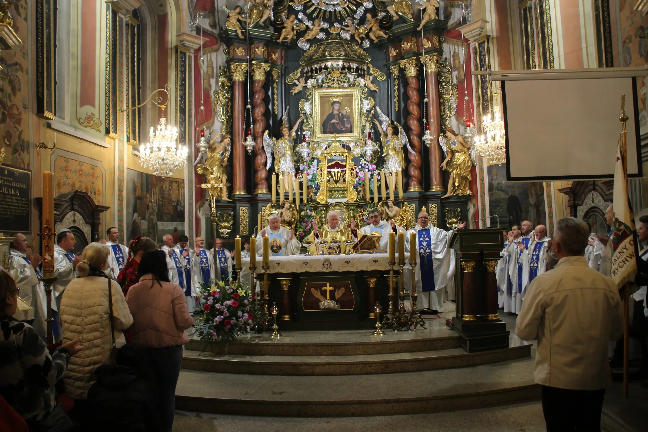 Cała uroczystość z powodu ciągłych opadów deszczu odbyła się w bazylice.